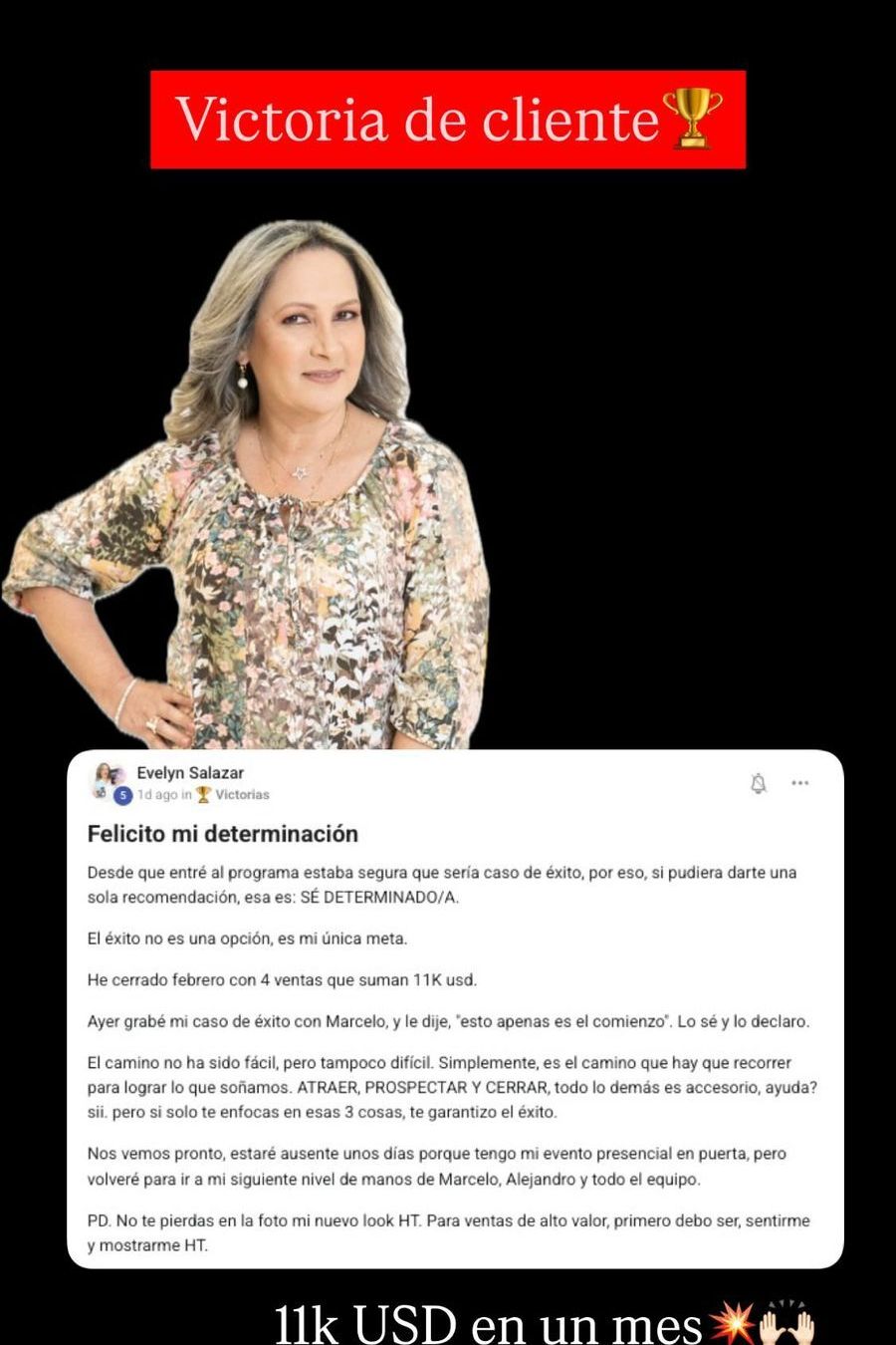 Al entrar a nuestra mentoría recibió herramientas, técnicas poderosas , metodología, y el acompañamiento, que le ayudaron a cambiar ese switch y empezó a tener resultados, pues adquirió más confianza y seguridad.