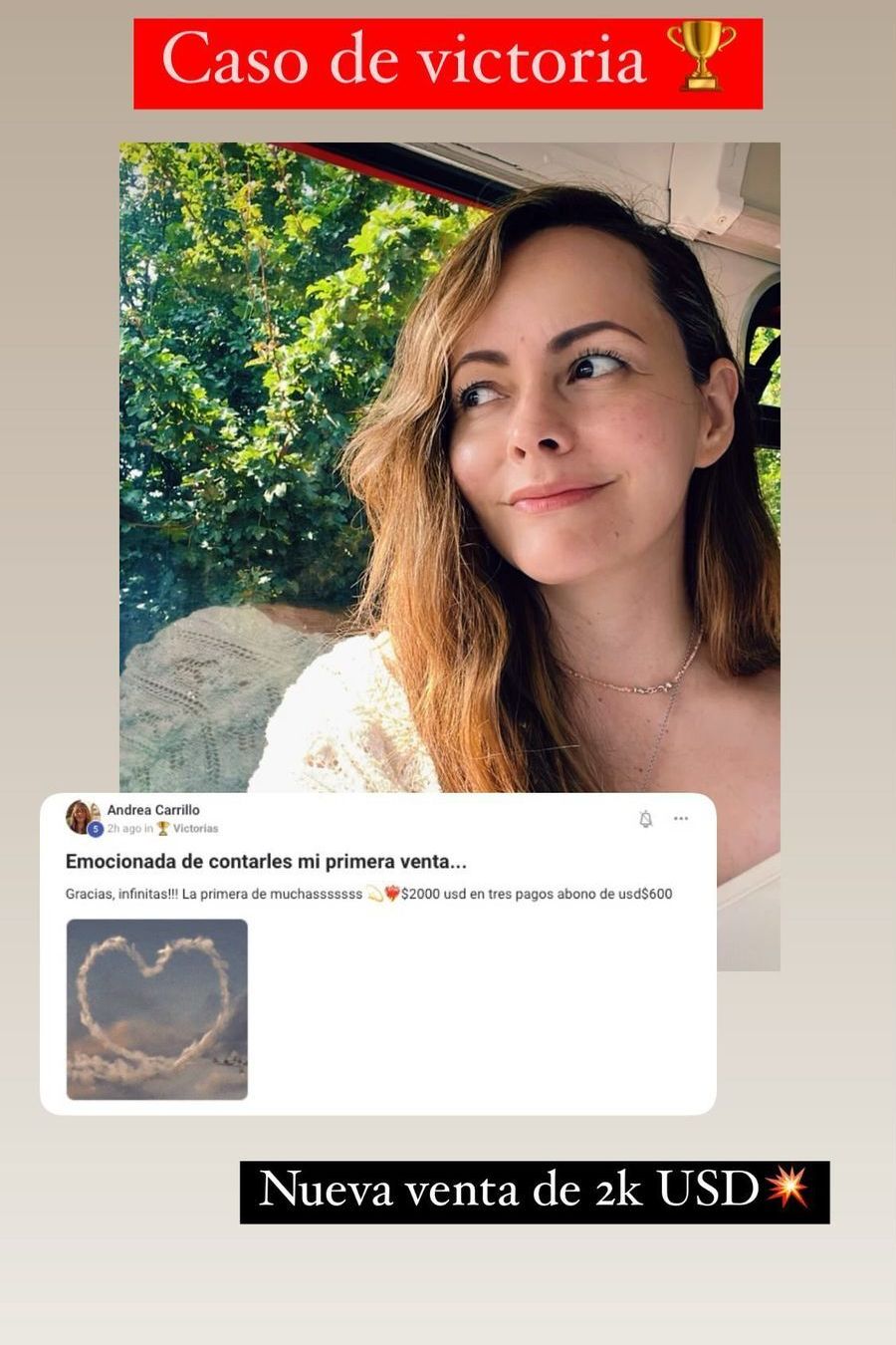 Lissete afirma: por primera vez logré vender una mentoría de 5.000 dólares.
